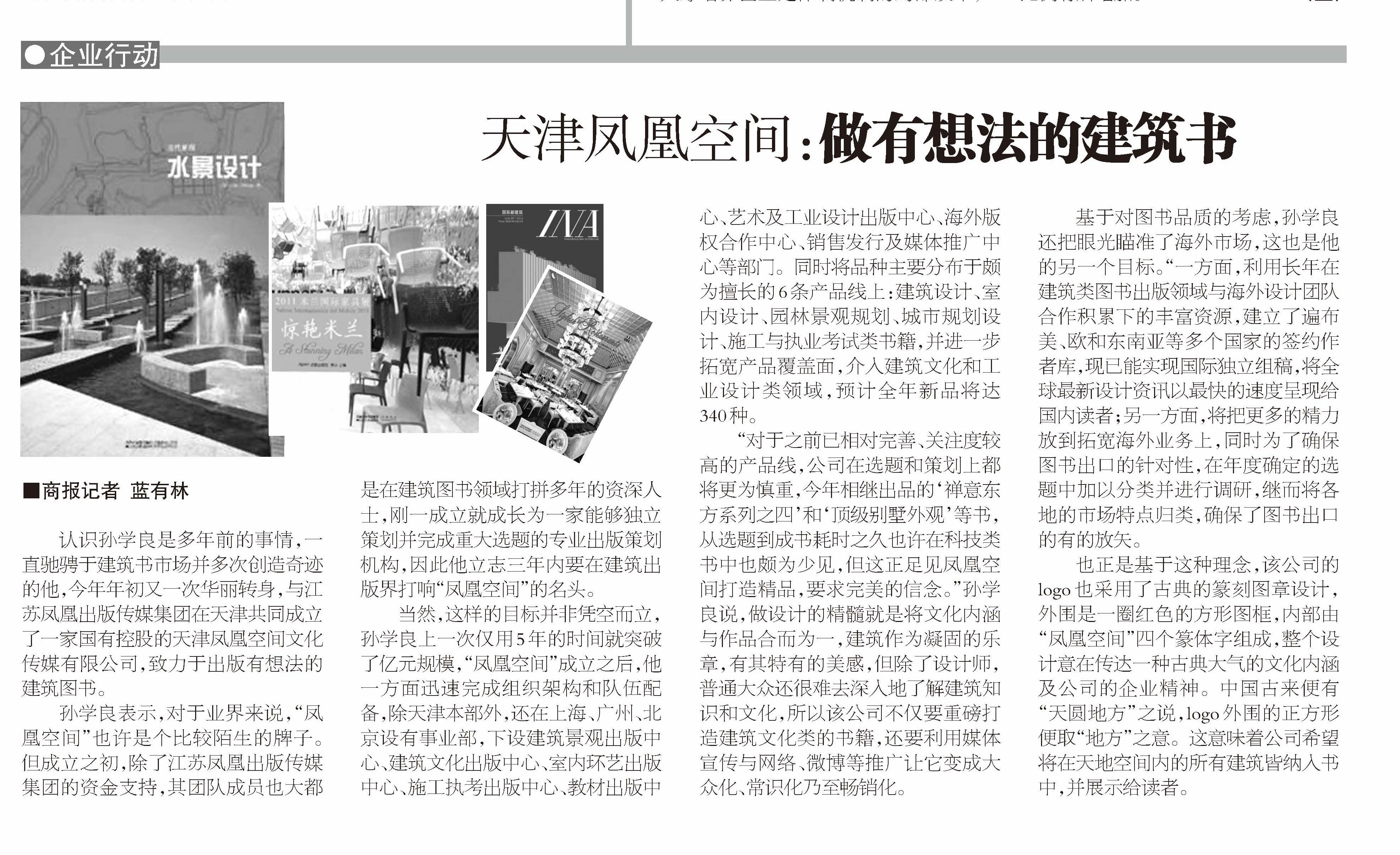 認識孫學(xué)良是多年前的事情,一直馳騁于建筑書市場并多次創(chuàng)造奇跡的他,今年年初又一次華麗轉(zhuǎn)身,與江蘇鳳凰出版?zhèn)髅郊瘓F在天津共同成立了一家國有控股的天津鳳凰空間文化傳媒有限公司,致力于出版有想法的建筑圖書。