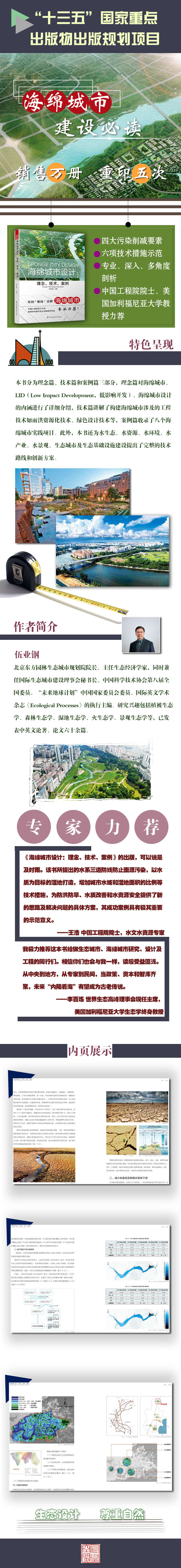 全書分為理念篇、技術(shù)篇和案例篇三大章,理念篇對于海綿城市、LID、海綿城市設(shè)計(jì)的定義與內(nèi)涵進(jìn)行了詳細(xì)介紹,技術(shù)篇介紹構(gòu)建海綿城市過程中涉及到的工程技術(shù)如雨洪資源化技術(shù)、水生態(tài)治理技術(shù)和綠色設(shè)計(jì)技術(shù)等,案例篇則收錄了其團(tuán)隊(duì)近年來八個海綿城市實(shí)踐項(xiàng)目,景觀項(xiàng)目類型豐富,包括了濕地設(shè)計(jì)、水庫設(shè)計(jì)、水生態(tài)治理及水系設(shè)計(jì)等海綿城市構(gòu)建聚焦的項(xiàng)目。
