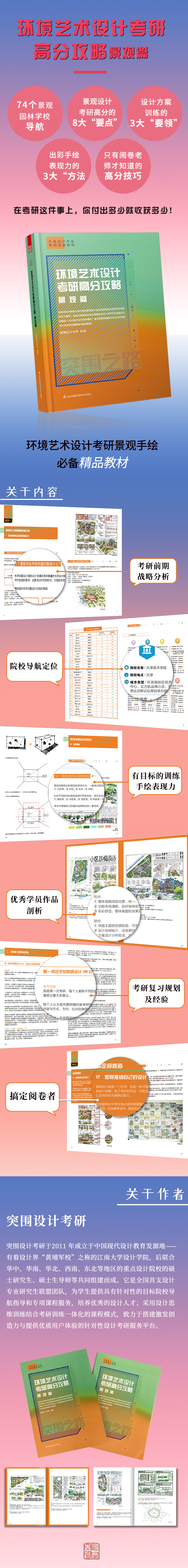 本書是針對(duì)環(huán)境藝術(shù)設(shè)計(jì)(景觀園林設(shè)計(jì))方向設(shè)計(jì)考研的專業(yè)課指導(dǎo)用書,從2014 年底立項(xiàng)編纂到2019 年初最終完成,歷經(jīng)十幾位優(yōu)秀導(dǎo)師對(duì)于稿件的反復(fù)修改與論證。如何在環(huán)藝(景觀)市場(chǎng)上各類機(jī)構(gòu)出版的五花八門的景觀園林設(shè)計(jì)考研指導(dǎo)用書中脫穎而出,解決所有考生面對(duì)設(shè)計(jì)考研的痛點(diǎn)問題,成了編著本書的核心出發(fā)點(diǎn)。不只局限于一套完整的快題設(shè)計(jì)方案,從景觀考研信息分類到最終完成考研設(shè)計(jì)稿的全流程,都是本書要重點(diǎn)分析的知識(shí)板塊。