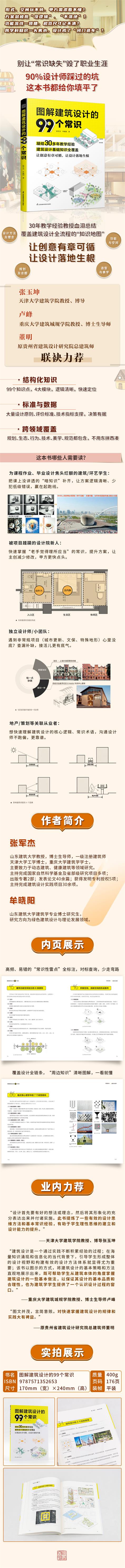 針對上述問題,本書主要從設(shè)計方法及理念、規(guī)劃及總圖、功能與空間、造型與美學(xué)4個方面對建筑設(shè)計的常識內(nèi)容進(jìn)行了總結(jié),并對一些基本原理進(jìn)行了梳理。通過提煉有相對明確標(biāo)準(zhǔn)的經(jīng)驗規(guī)律,讓學(xué)習(xí)過程有章可循,讓設(shè)計實踐也有一定的依據(jù),從而保證設(shè)計的基本品質(zhì)和合理性。